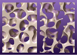 The term osteoporosis literally means “porous bones” (see figure 1). Osteoporosis is characterized by low bone mass and structural deterioration of bone tissue, leading to bone fragility and an increased susceptibility to fractures. Bones are living tissues that are constantly being lost and reformed. When bone loss is greater than bone formation, osteoporosis occurs. Osteoporosis is often referred to as the “silent thief” – bone loss progressing painlessly without symptoms until a fracture occurs. People may not know that they have osteoporosis until their bones become so weak that a sudden strain, a minor bump, or a low impact fall causes a fracture.